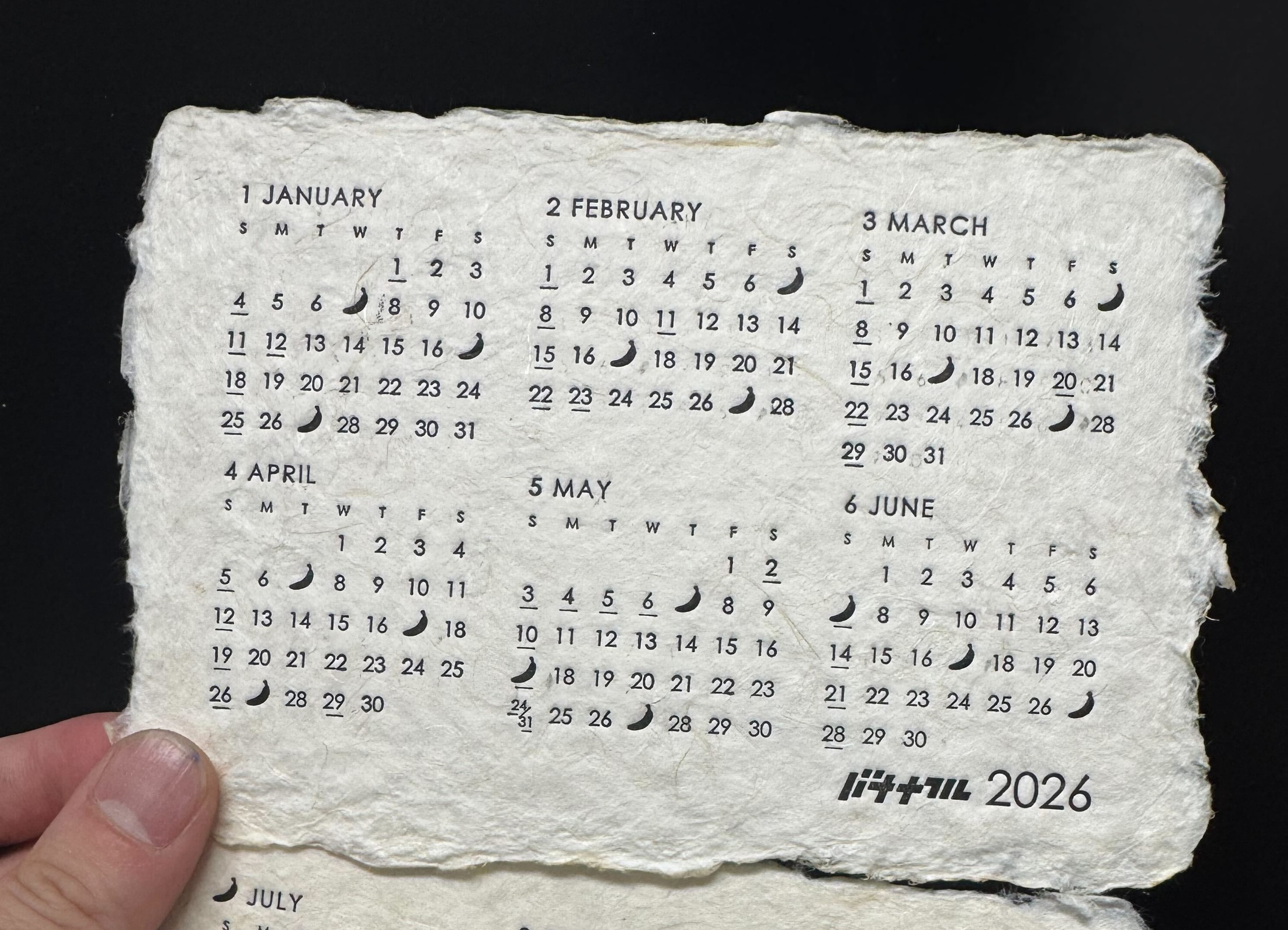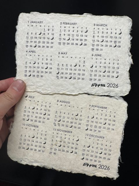 手漉き紙のため一枚一枚の表情は異なり、2026年版のその一枚だけの紙の個性を楽しめます。