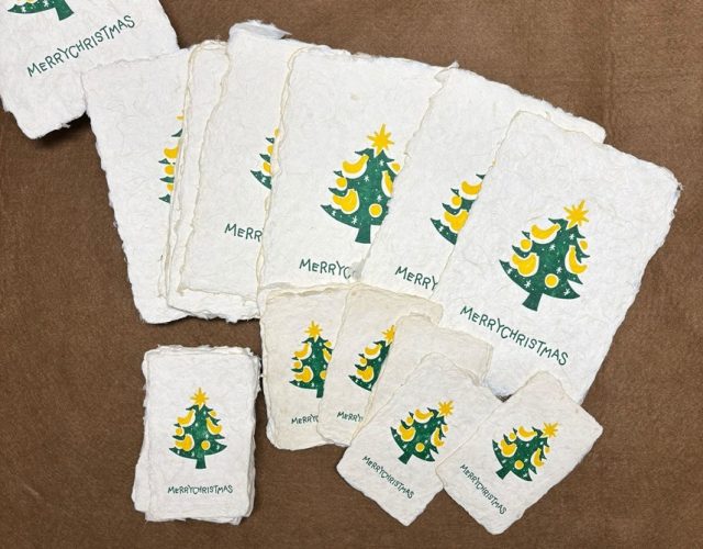 一枚ずつ丁寧に手漉きすることで生まれる自然な表情と、活版印刷ならではの凹凸感が調和し、温もりのあるクリスマスカードに仕上がりました。